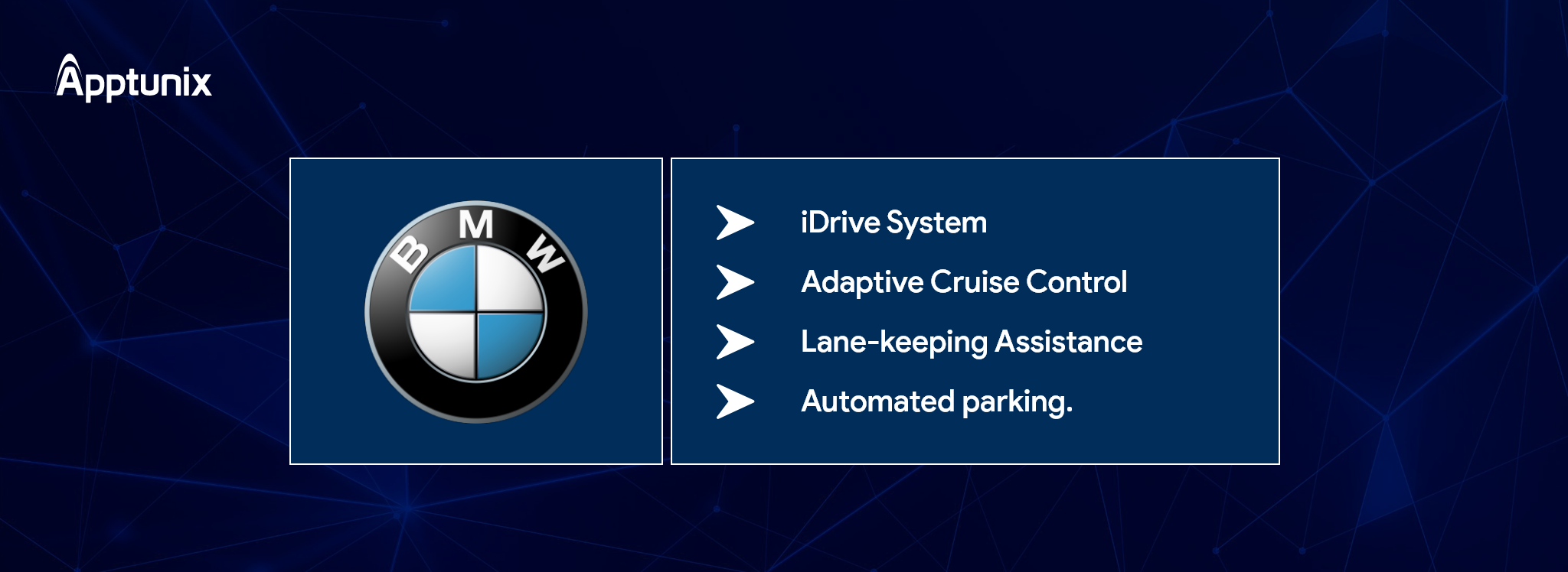 1.BMW BMW has been a pioneer in integrating AI across its operations, from manufacturing to driver assistance. The company is using AI to improve production processes, optimize logistics, and offer a smarter driving experience to customers.