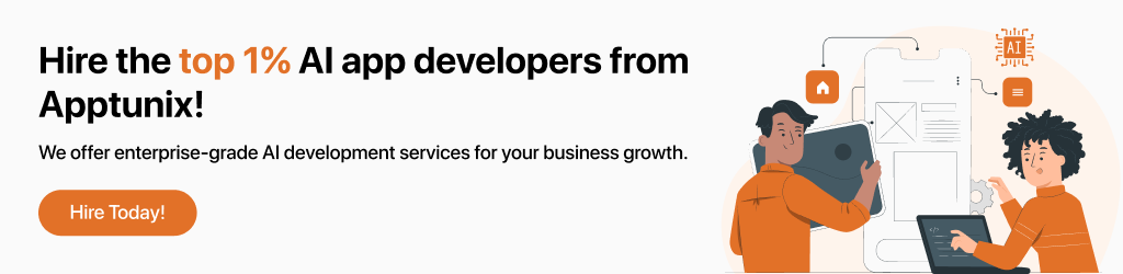 Apptunix, a top-notch enterprise-grade AI app development company, supports businesses through every stage of this shift. Our AI app development services help companies build AI features that are ready for real operations. Apptunix gives you the structure and guidance needed to move forward with confidence.
