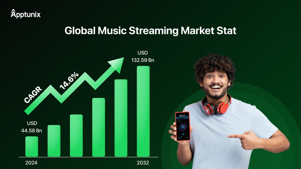 Let's talk numbers: The global music streaming market is projected to be worth USD 44.58 billion in 2024 and is expected to grow to USD 132.59 billion by 2032, expanding at a CAGR of 14.6% during the forecast period from 2024 to 2032.