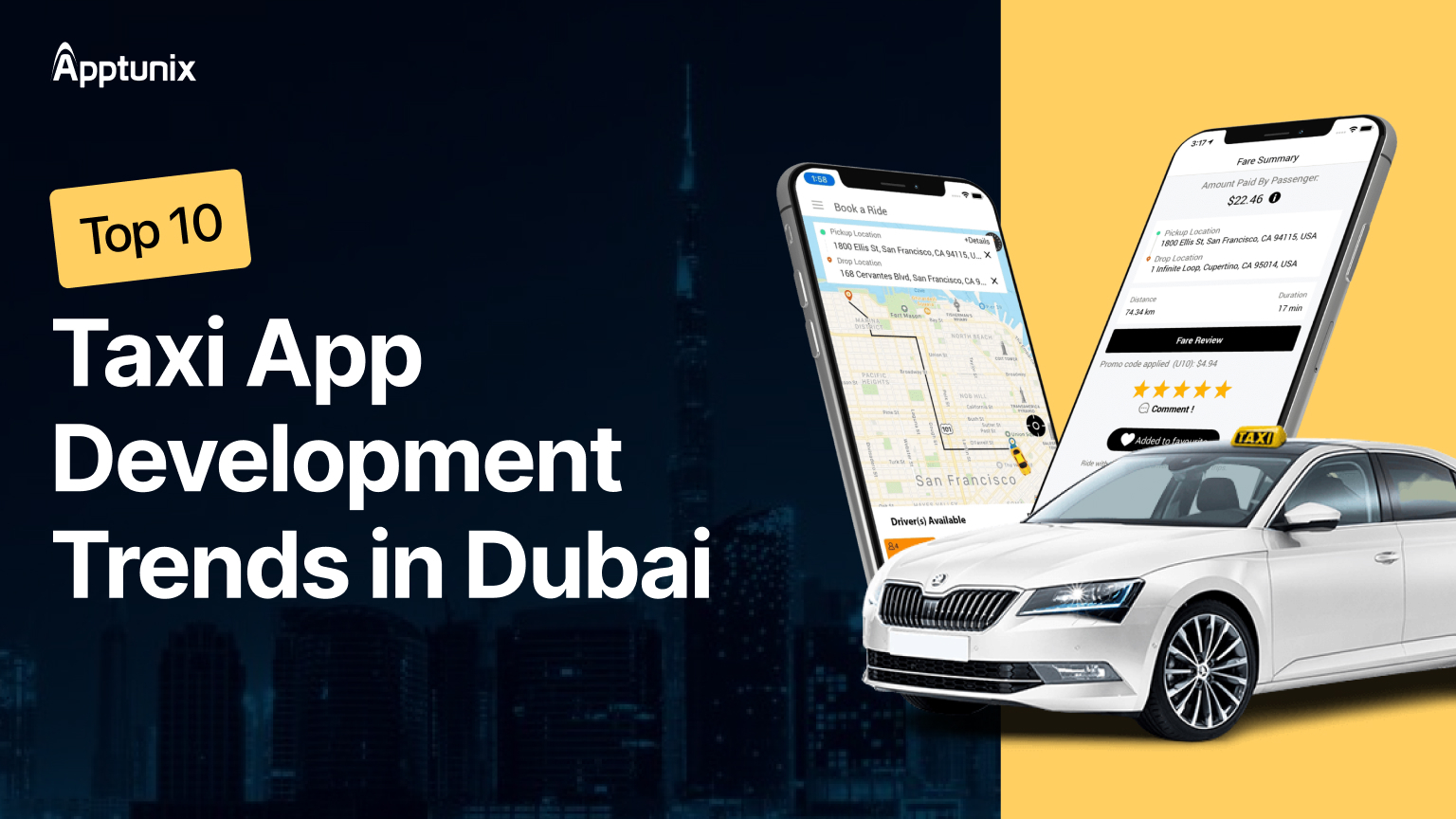 Apptunix is the best mobile app development company in Dubai, having developed taxi apps for more than a decade. It’s a perfect choice due to its AI-integrated taxi app for both iOS and Android app development services. The company offers the best taxi app development services in the UAE. Its blend of speed, advanced technology, and end-to-end support makes Apptunix a perfect choice for taxi app development in Dubai.