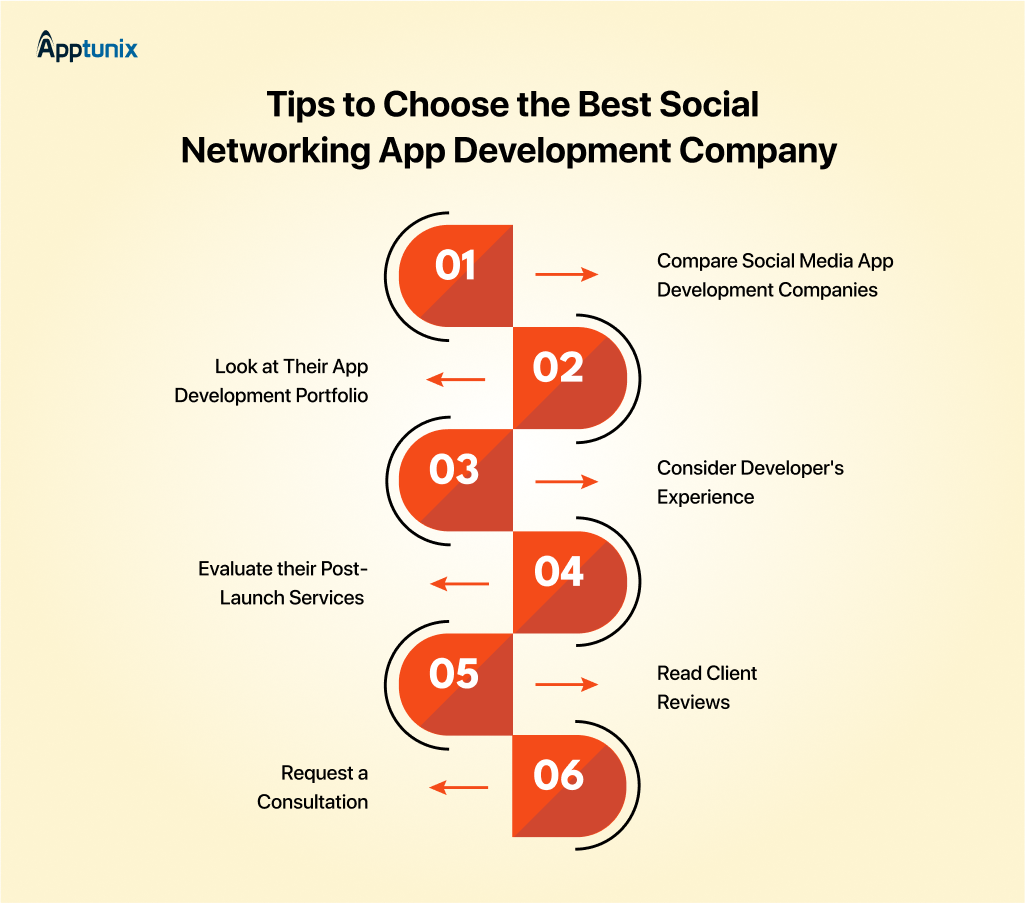 4: Find an App Development Agency that Offers Post-Launch Services When selecting a social media application development company, make sure they offer continuous maintenance and technical support. It is important because maintenance keeps your app functional and updated in the long run.