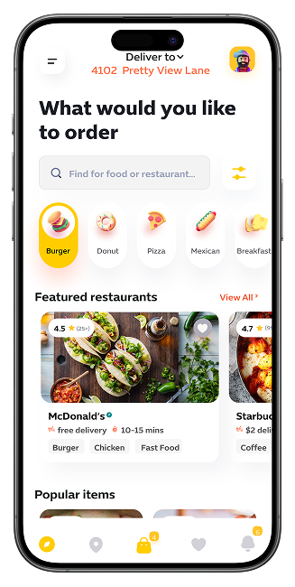 With our on-demand food delivery app development solution, you can substantially boost the number of orders, leveraging the latest technology and user-friendly interfaces to attract more customers.